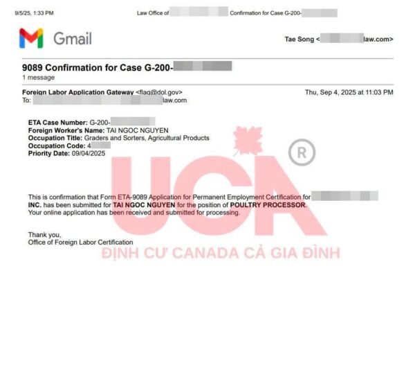 04/9: Nhận Mã hồ sơ giấy phép lao động (PERM Case Number) – đánh dấu bước tiến lớn trong hồ sơ EB-3